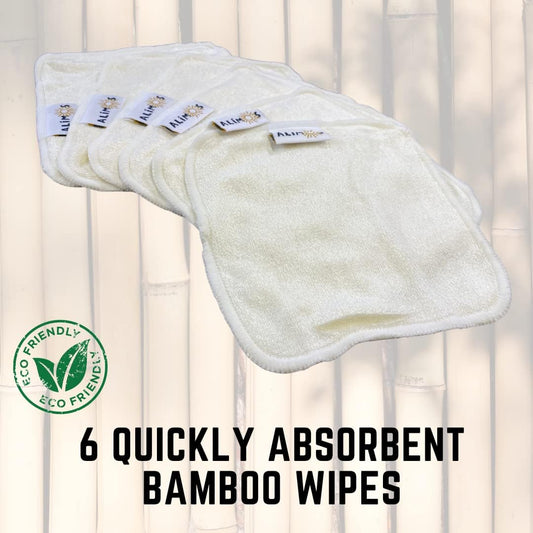 Alimos Bamboo Baby Wipes Reusable Washable Pack of 6 - Size: 15 * 15cm Perfect for Baby's Hands and Face, Absorbent Super Soft & Naturally Anti-Bacterial 6pcs