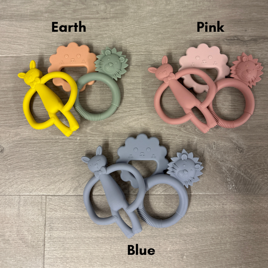 Alimos Antimicrobial Food-Grade Silicone Teether Toys (3 Pack), Easy to Grip, BPA Free, 3+ Months, Natural Organic Teething Toys, Gel Applicator, Baby Gift Essentials