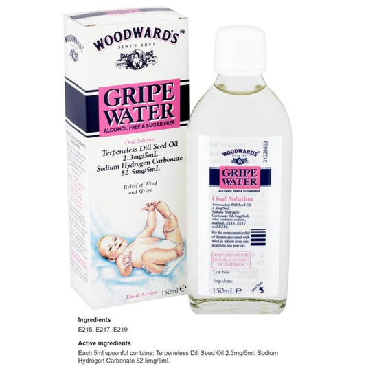 Woodwards Gripe Water Dual Action Relief of Wind and Gripe 150 ml Bundled with Alimos Colic Gas Passers and Feeding Syringe