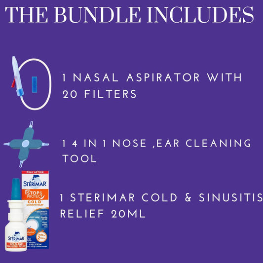 Sterimar Stop & Protect Cold & Sinusitis Relief Bundled with Alimos Nasal Aspirator, Snot Sucker Suitable for Newborns and Babies with 20 Filters & Nose Picker 4-in-1 Tool