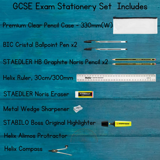 Alimos GCSE Complete Exam Stationery Bundle Set Bundled With Bic Pens, Geometry Set & Clear Exam Pencil Case Back To School Kit