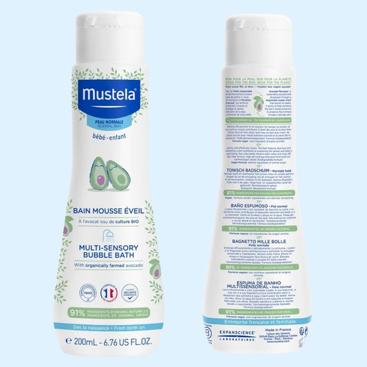 Baby Multi Sensory Bubble Bath 200ml Bundled with 3 Alimos Reusuable Bamboo Baby Wipes, Bath Thermometer and Silicone Brush