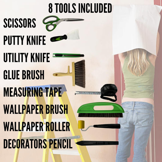 Tsekouri Wallpaper Paste Kit - Set Includes 8 Piece Wallpaper Kit Containing Wallpaper Paste Brush and Smoother, Wallpaper Seam Roller, Wall Paper Scraper Tool, Wallpaper Cutter & Measuring Tape